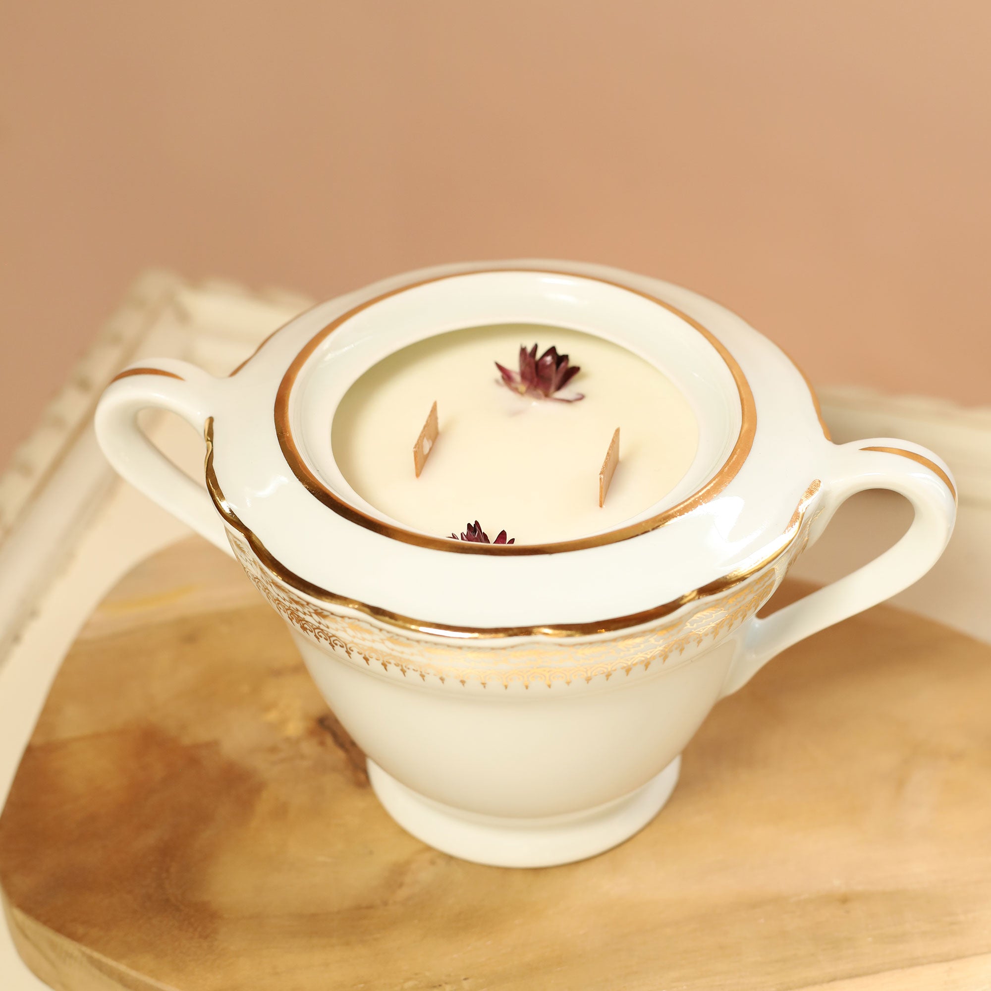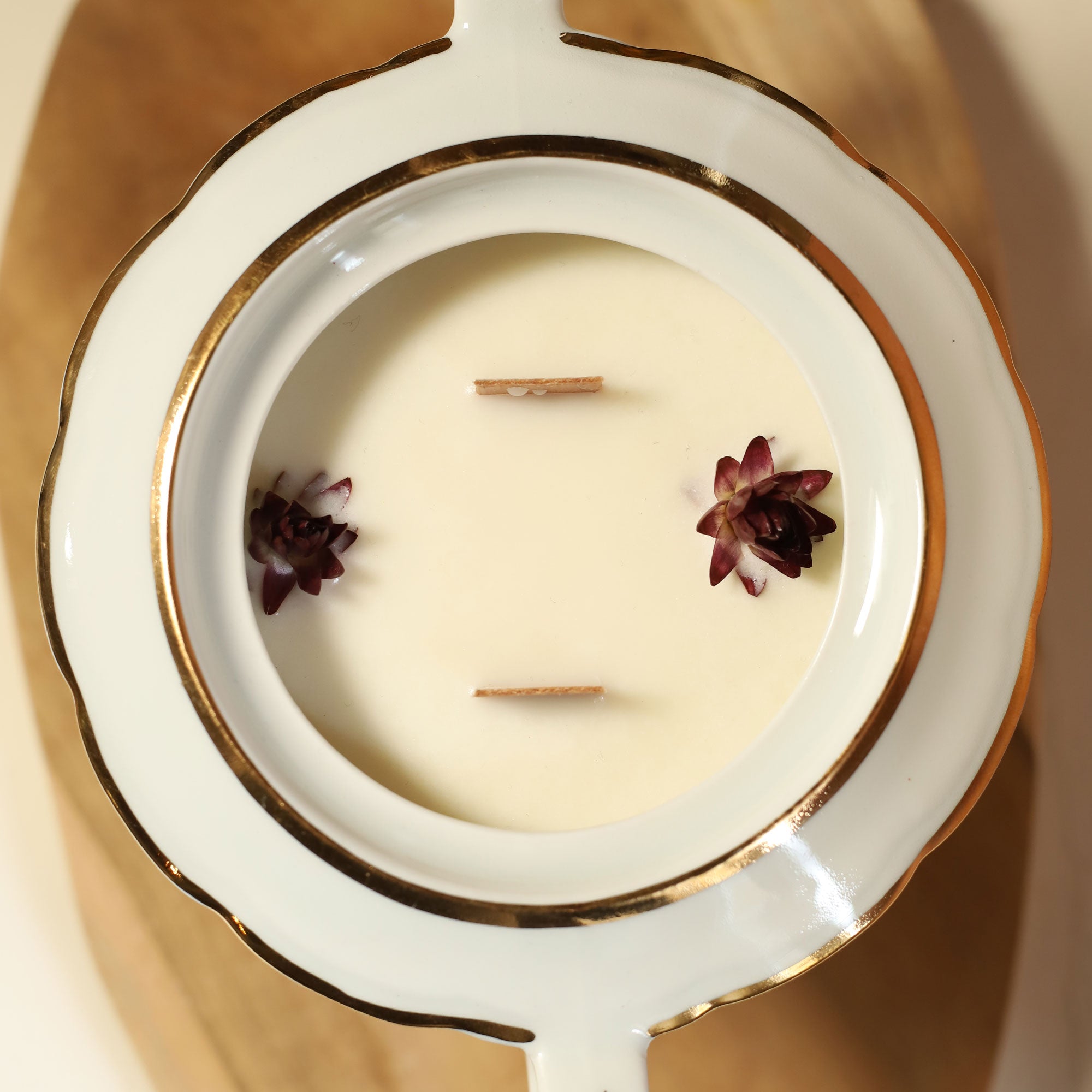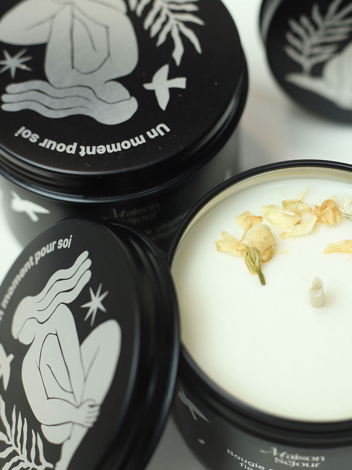 Nos bougies s'ornent de végétaux cultivés en permaculture dans notre jardin charentais. Cueillis et séchés avec soin, ils apportent une signature visuelle unique qui sublime nos parfums de Grasse.