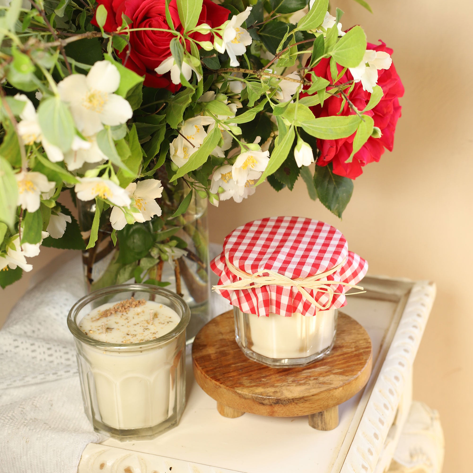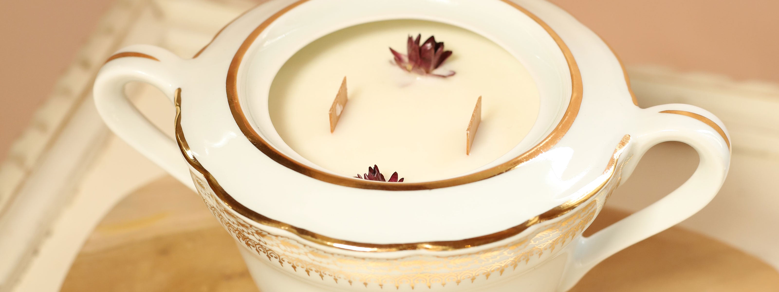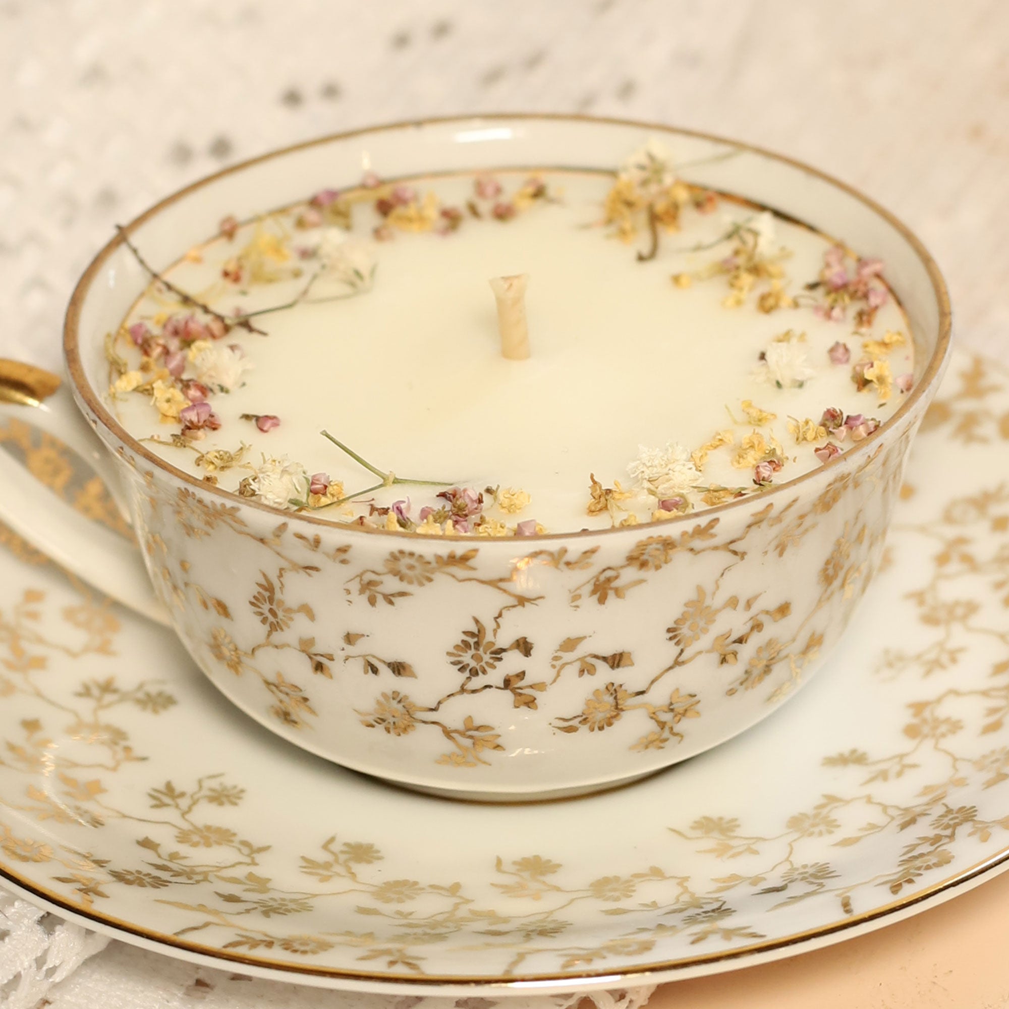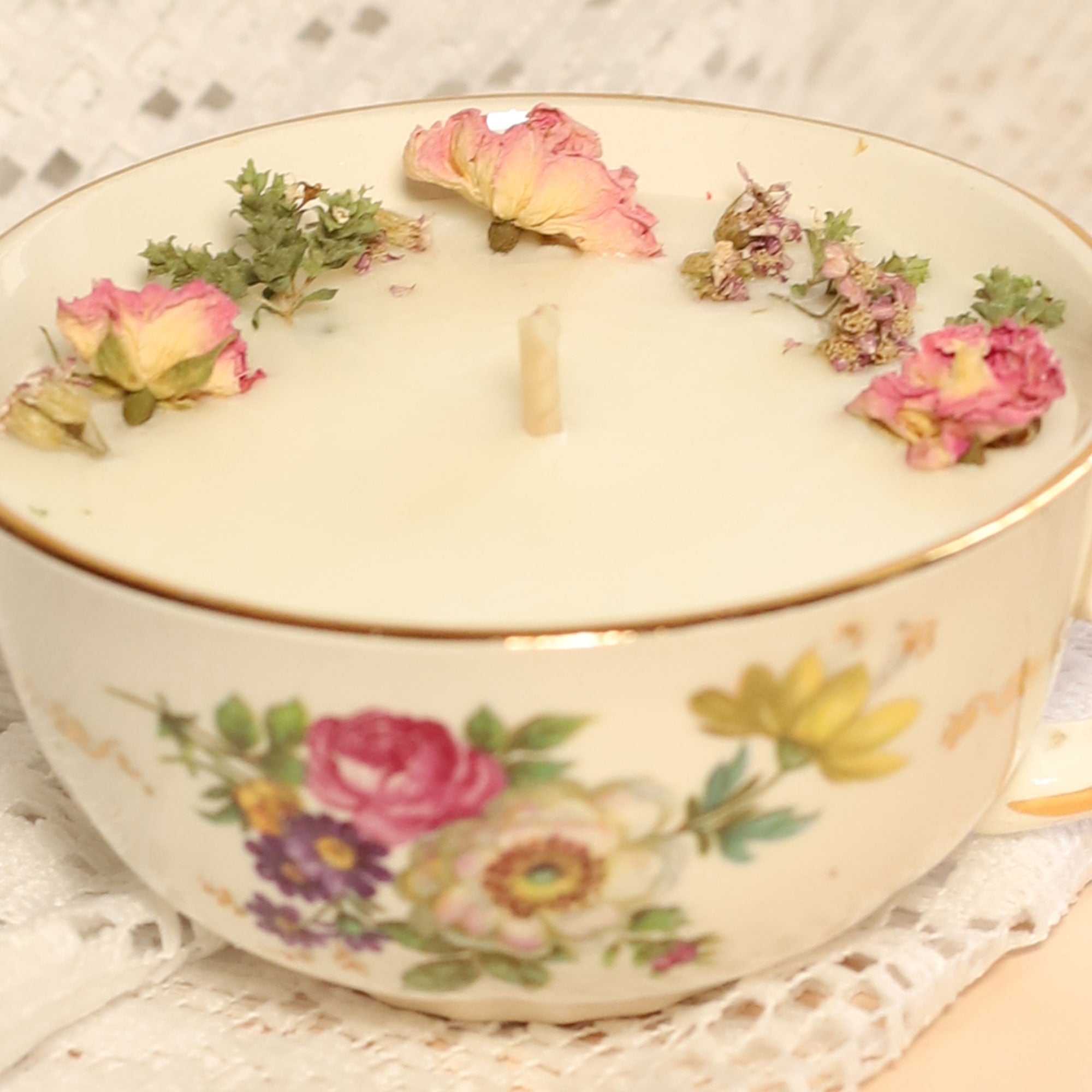 Nos bougies s'ornent de végétaux cultivés en permaculture dans notre jardin charentais. Cueillis et séchés avec soin, ils apportent une signature visuelle unique qui sublime nos parfums de Grasse.