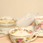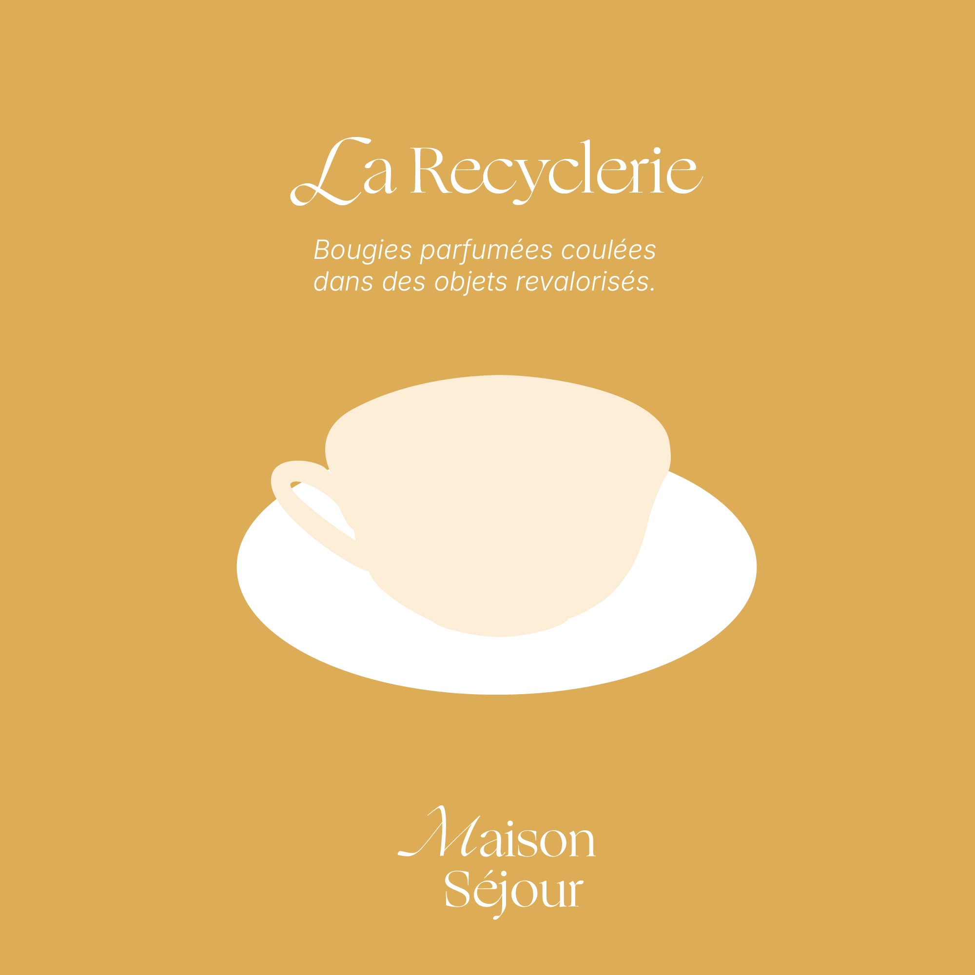 Certains objets ont déjà une histoire. Une tasse oubliée, un petit pot ancien, une coupelle passée de main en main. Plutôt que de les laisser disparaître, nous aimons leur offrir une nouvelle fonction. Chinés avec notre brocanteuse locale de chez Henriette&Ginette, ou trouvés lors de nos propres recherches, ces objets uniques deviennent les contenants de nos bougies fleuries et parfumées. Nous les nettoyons, les préparons puis les remplissons avec notre cire et nos parfums, comme nous le faisons pour toutes nos créations. Cette recyclerie est une autre manière d’exprimer notre artisanat : transformer l’existant plutôt que produire du neuf, créer des pièces uniques et prolonger la vie d’objets qui avaient déjà quelque chose à raconter.