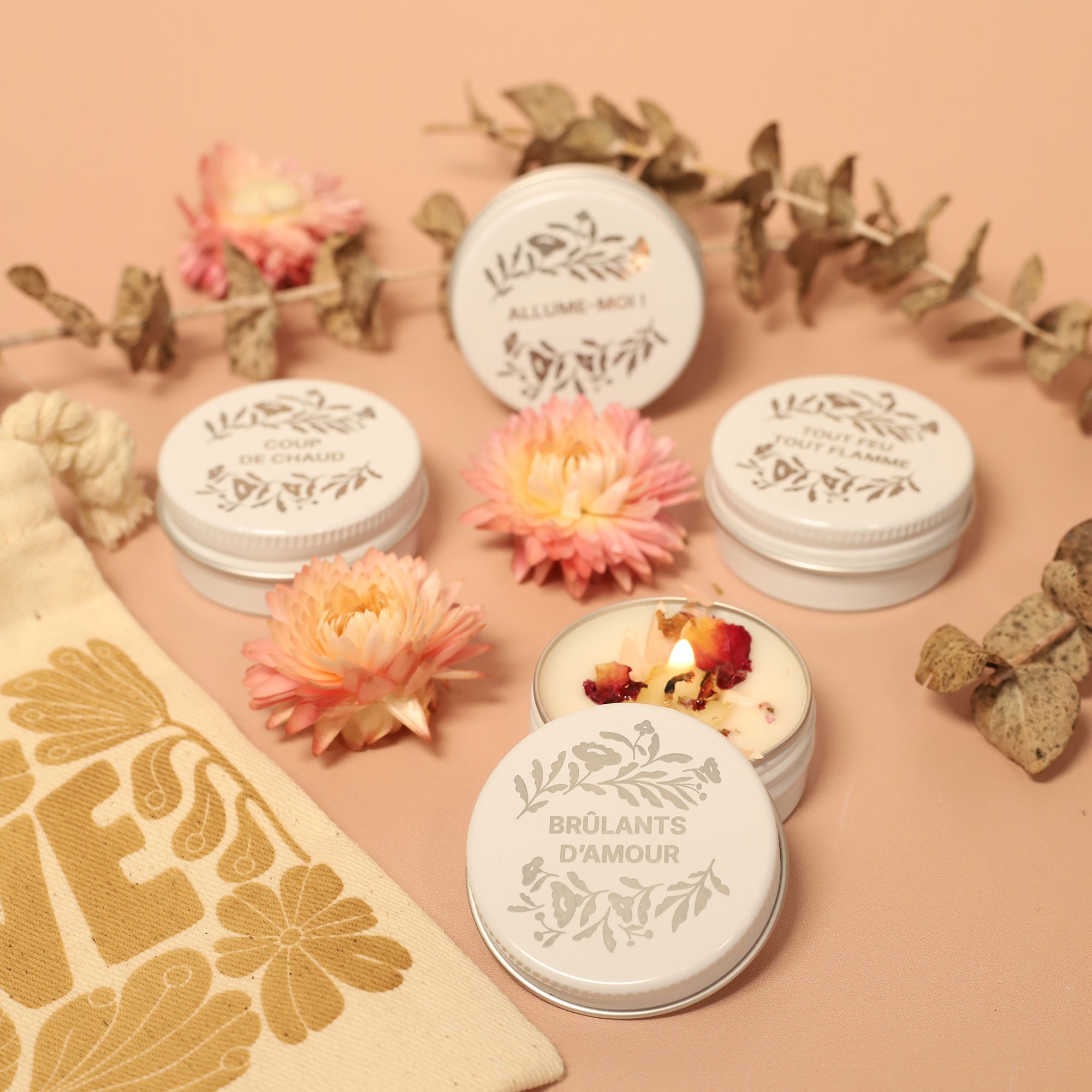 Notre sélection spéciale réunit des bougies fleuries, des brumes d’intérieur parfumées et d’autres créations délicatement parfumées, toutes issues d’une fabrication artisanale et française. Conçues et fabriquées à la main dans notre atelier en Charente-Maritime, ces idées cadeaux célèbrent l’amour, le partage et les moments précieux avec celles et ceux que l’on aime.